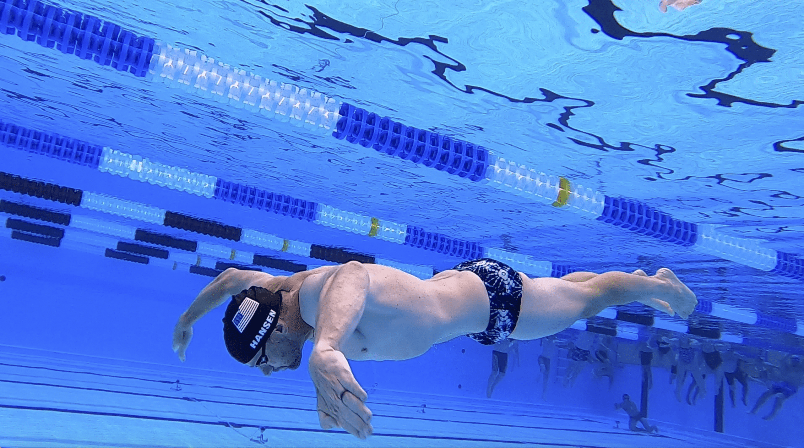 What does this mean? That swimmers are allowed to take one full arm ‘pulldown’ that is completely done underneath the surface of the water. See the sequence of photos below featuring Olympians, Brendan Hansen and Katie Hoff.